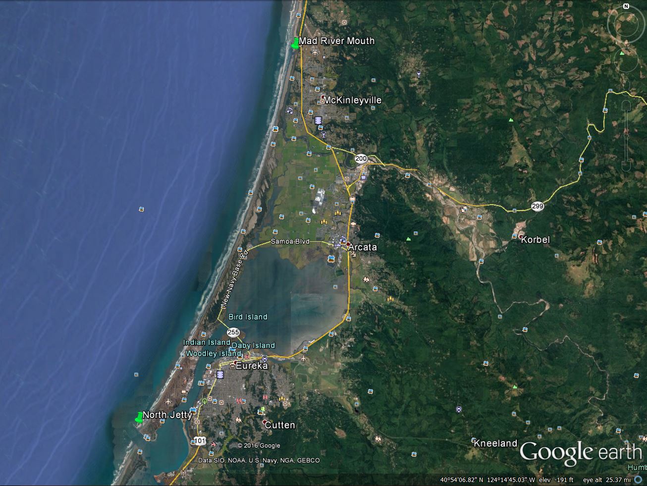 - 13.2- Kneeland Airport. You could park here and cut 26 miles off the ride.